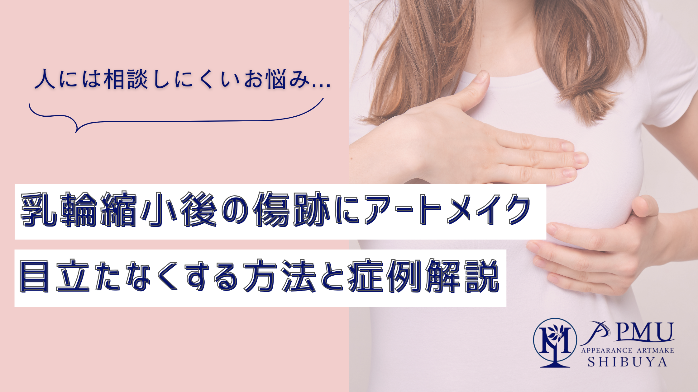 乳輪縮小術後の傷跡が気になる方へ。PMUアピアランスケア渋谷の医療アートメイクなら、肌色や乳輪の色に合わせて自然にカモフラージュ可能。形成外科専門医監修で安心。料金・症例・無料カウンセリングのご案内。